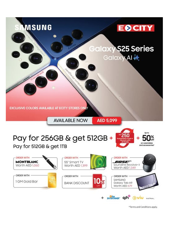 ECity, the renowned retail giant, is thrilled to announce the launch of its highly-anticipated 'Samsung S25 Deals' catalog, available from February 18th to February 23rd at 17 of their branches across United Arab Emirates. This limited-time offer is your chance to enjoy unbeatable discounts on a wide range of essential products.